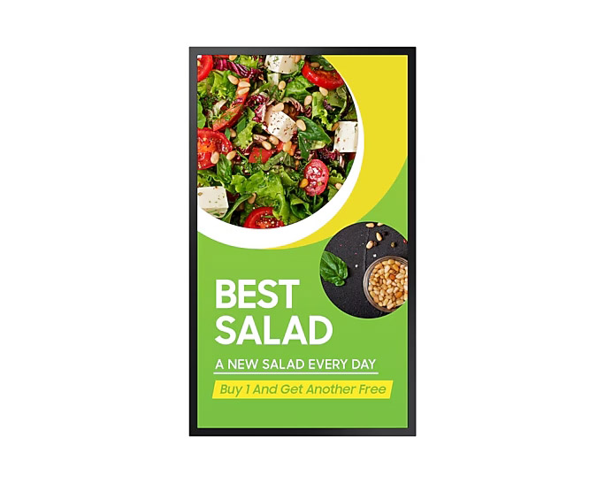 Idealny do małych witryn i punktów z okienkiem. 32” ekran wyraźnie prezentuje reklamy, promocje czy informację.